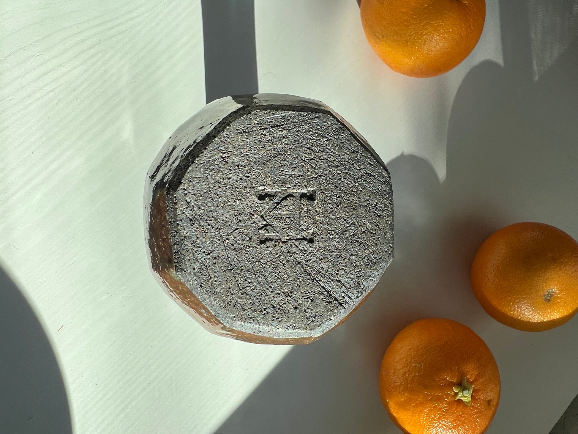 I love these long necked vases, as they really make a few flowers so elegant! This was wheel thrown and then carved for a faceted look. The glaze is a brown earthy tone which looks great with flowers and lets their colors sing.